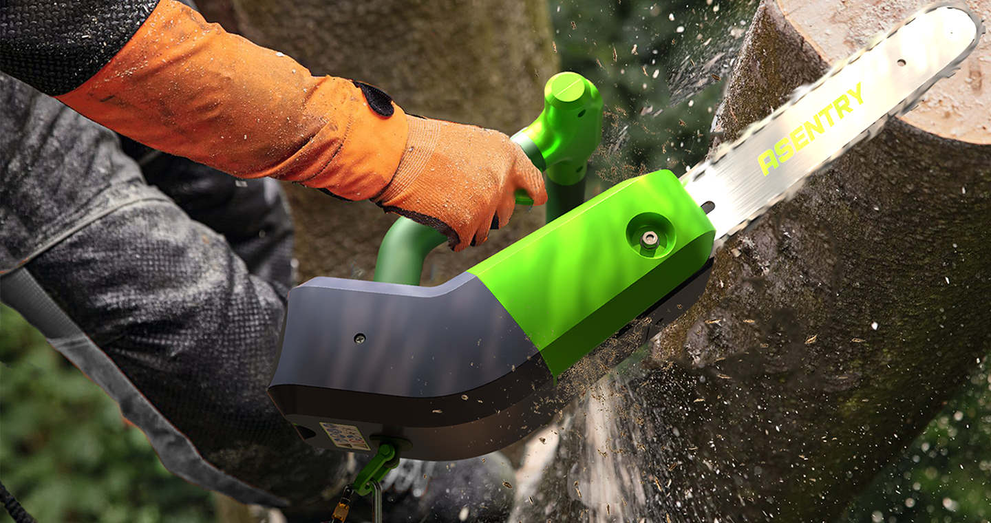 ASENTRY is a top-handle arborist chainsaw designed to actively prevent injury through intelligent, non-passive safety systems. It acknowledges the realities of canopy work: a space where productivity, danger, and human nature go hand in hand. Five interconnected safety technologies create a robust protective net that responds to risk without compromising realistic professional workflow.