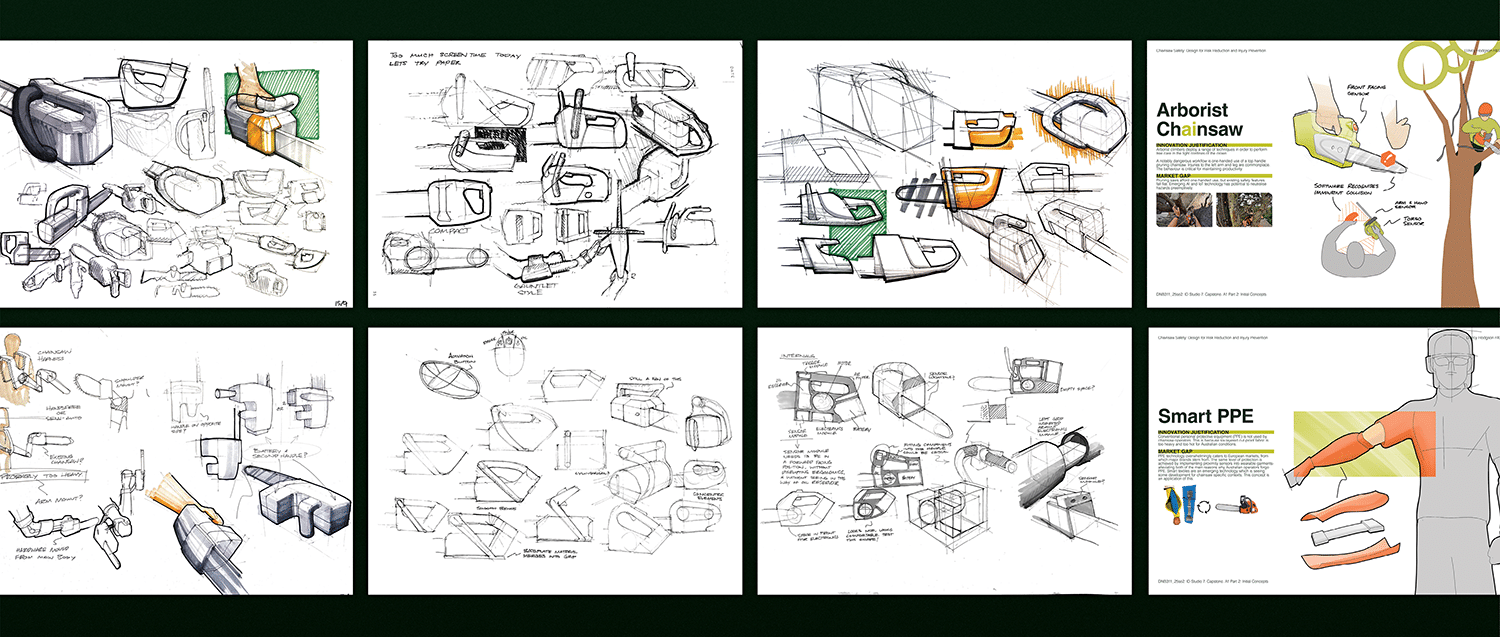 Two years ago, my high school best friend was working as an arborist climber. While five metres up in a tree, he lost stability, and his arm came down onto his top-handle chainsaw. He sustained a life-altering injury that almost cost him his arm. When I spoke with him afterward, it was immediately clear a design problem existed in the space. That incident became the foundation of my capstone project where I strove to answer the question:
