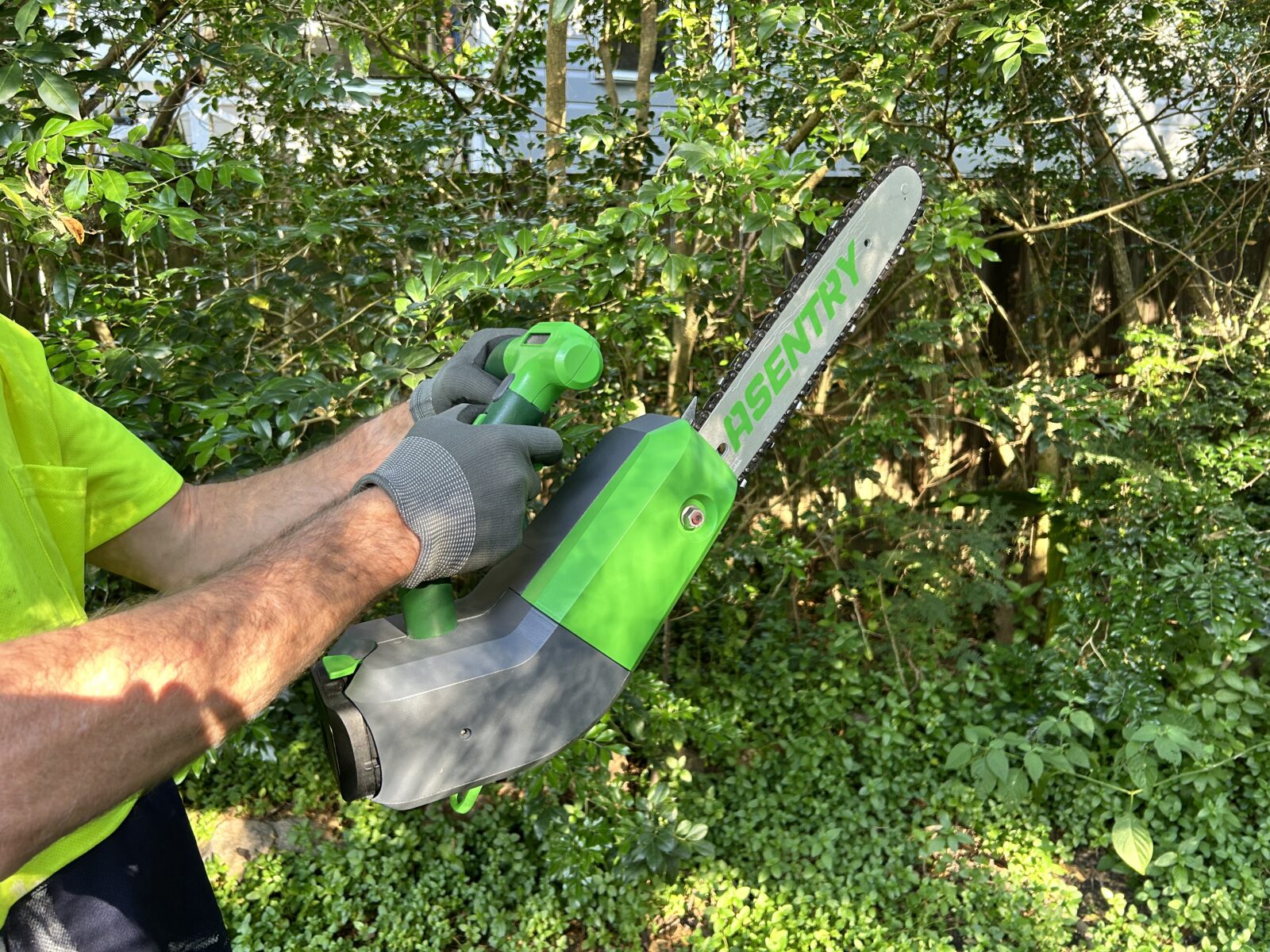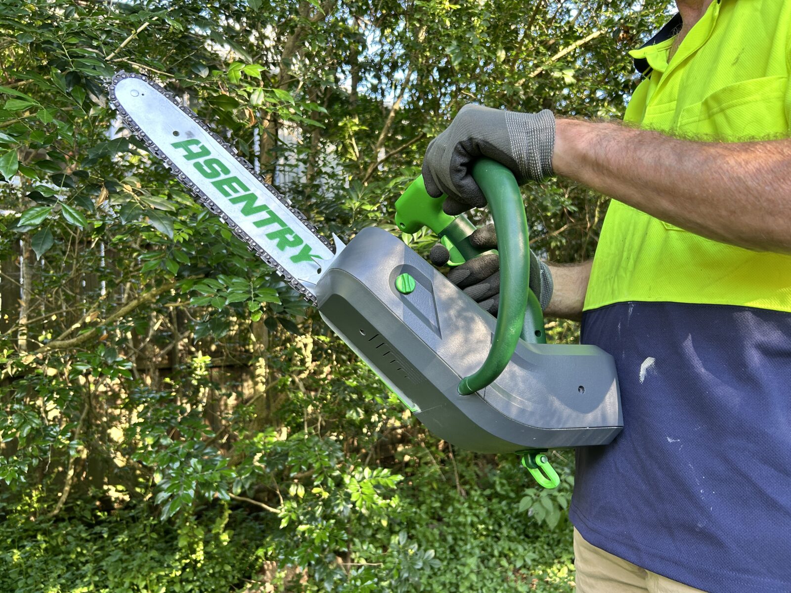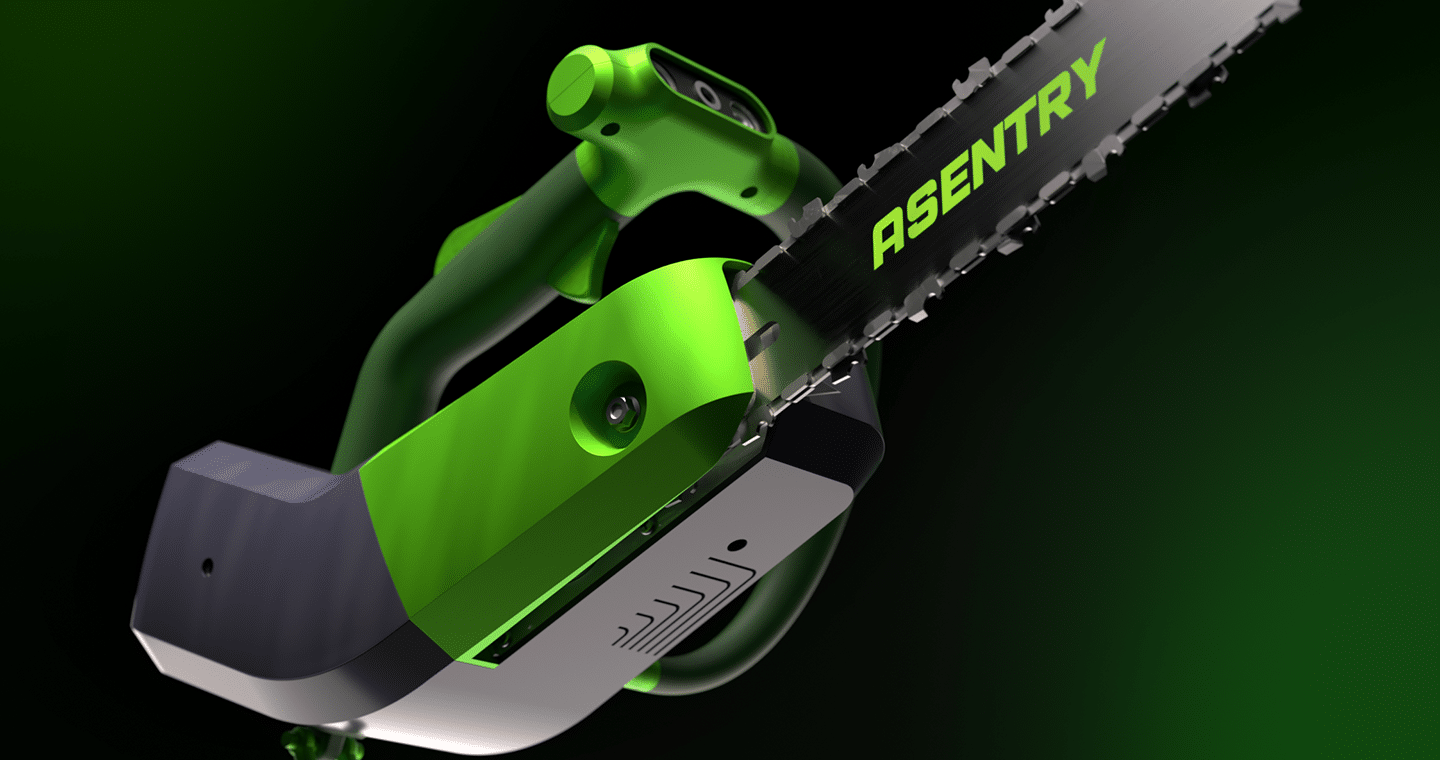 ASENTRY is a top-handle arborist chainsaw designed to actively prevent injury through intelligent, non-passive safety systems. It acknowledges the realities of canopy work: a space where productivity, danger, and human nature go hand in hand. Five interconnected safety technologies create a robust protective net that responds to risk without compromising realistic professional workflow.