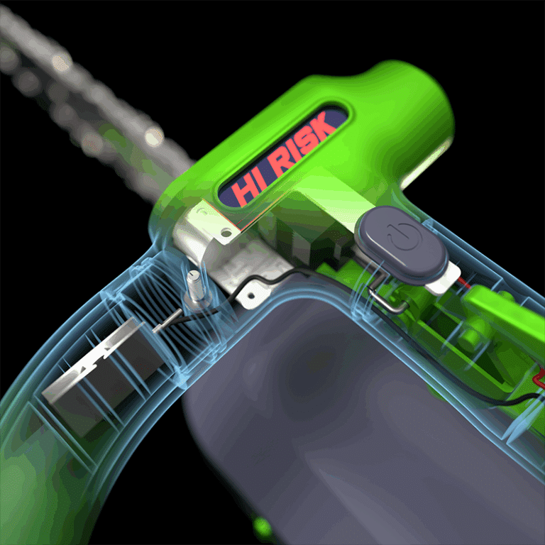 Built into the left handle, this tiny sensor measures pressure to detect one-handed use. If the left hand leaves the tool, Asentry shifts into high-risk mode, ready to intervene. It even modulates power draw to extend battery life- something users told me was critical. With this, the data pool expands to understand how the tool is being used at any given moment.