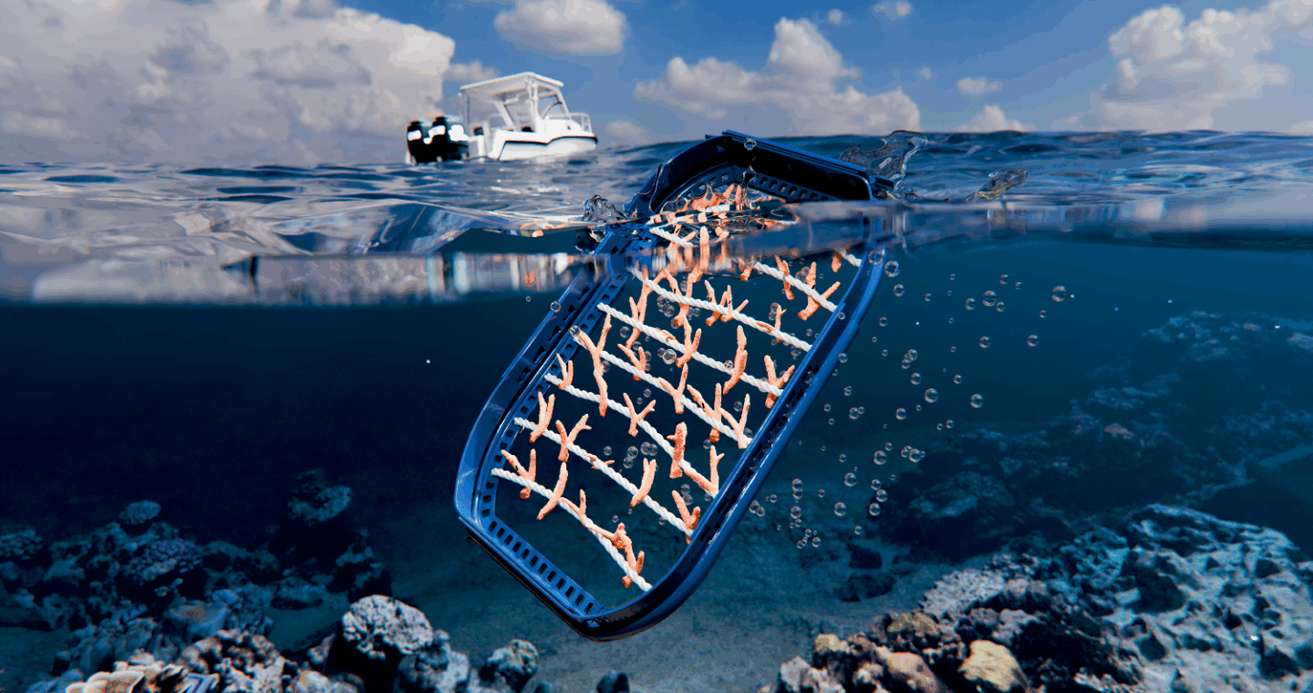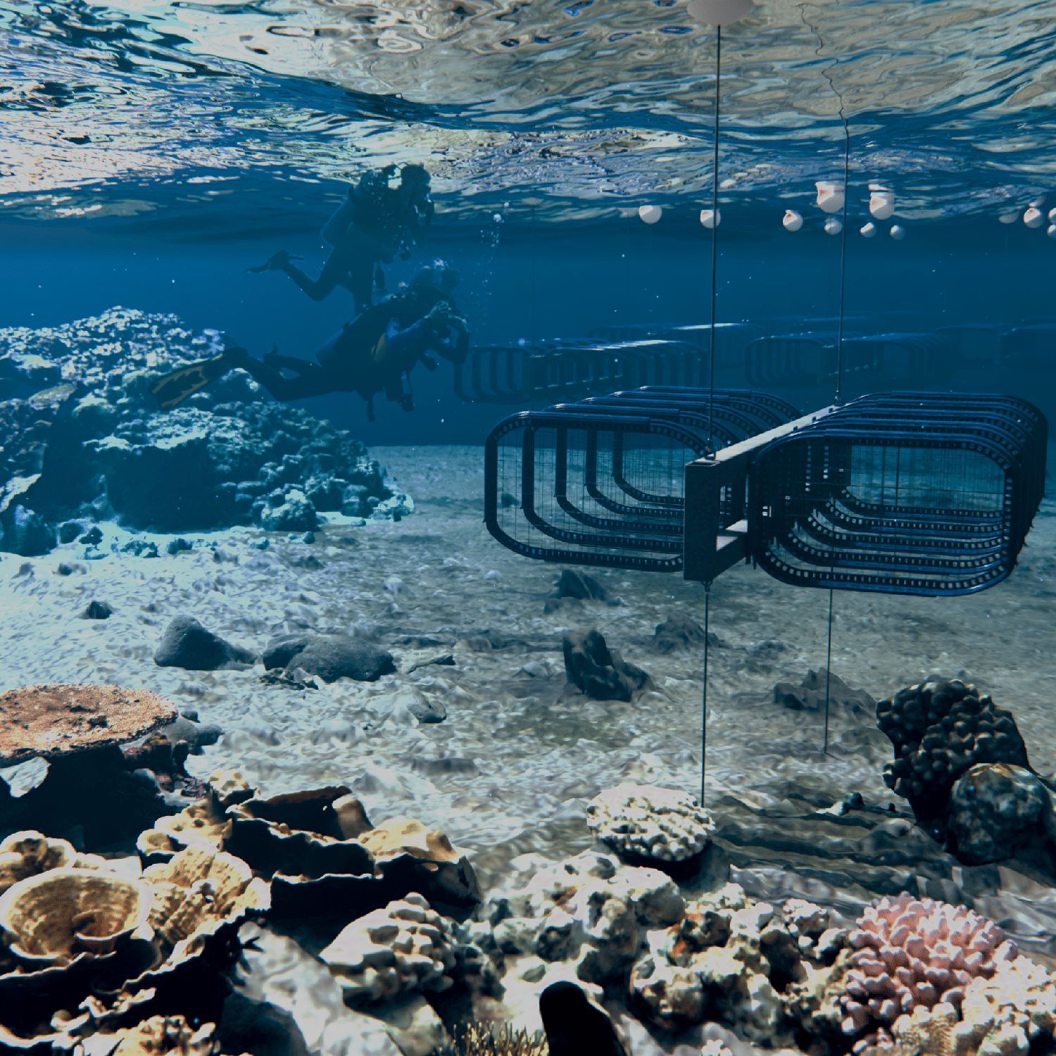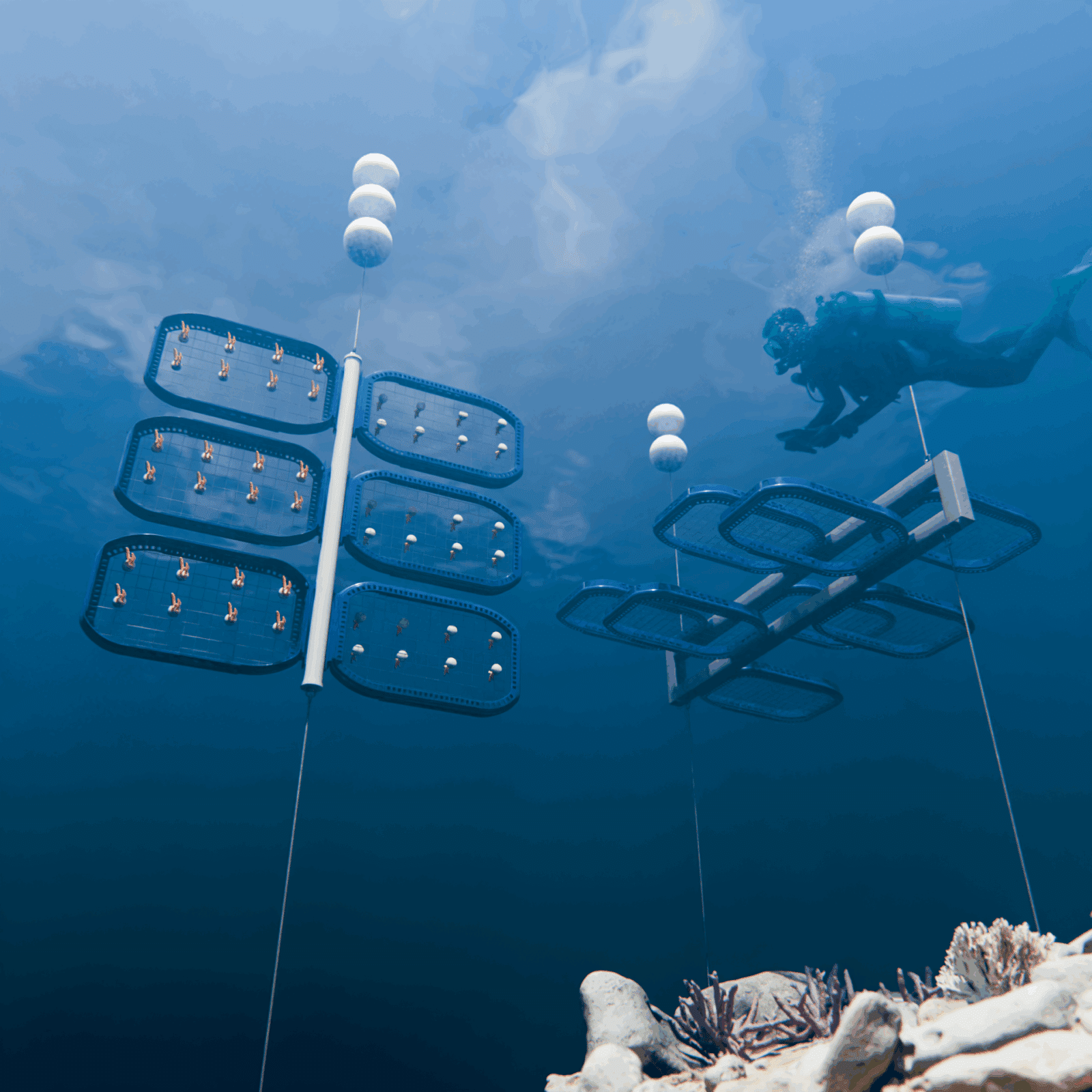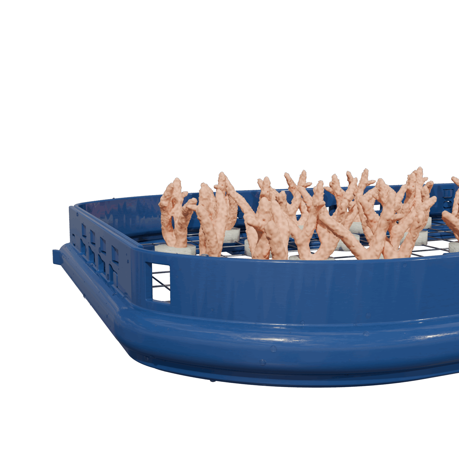 Coral Framework is a solution that intends to bring a degree of standardisation to the field of reef restoration. As conditions become worse for our coral reefs it is more important than ever to scale up reef restoration and coral production and replanting efforts, and the coral framework enables this by providing an versatile, customisable solution for coral racking in mid-water nurseries.