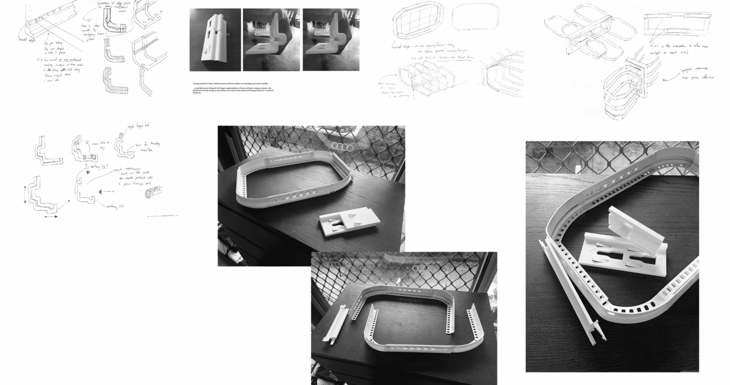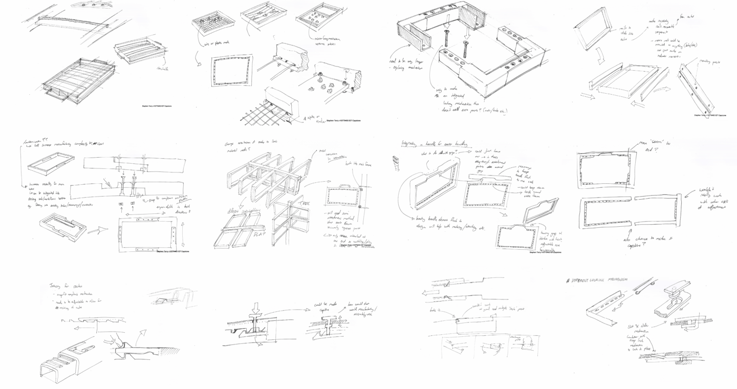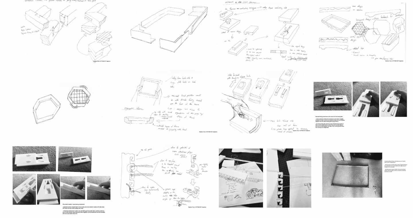 Following the research and problem identification phases, design development commenced with extensive sketching of ideas, iteration and modelmaking to develop the concept. This culminated in a 50% scale model of the design being produced.