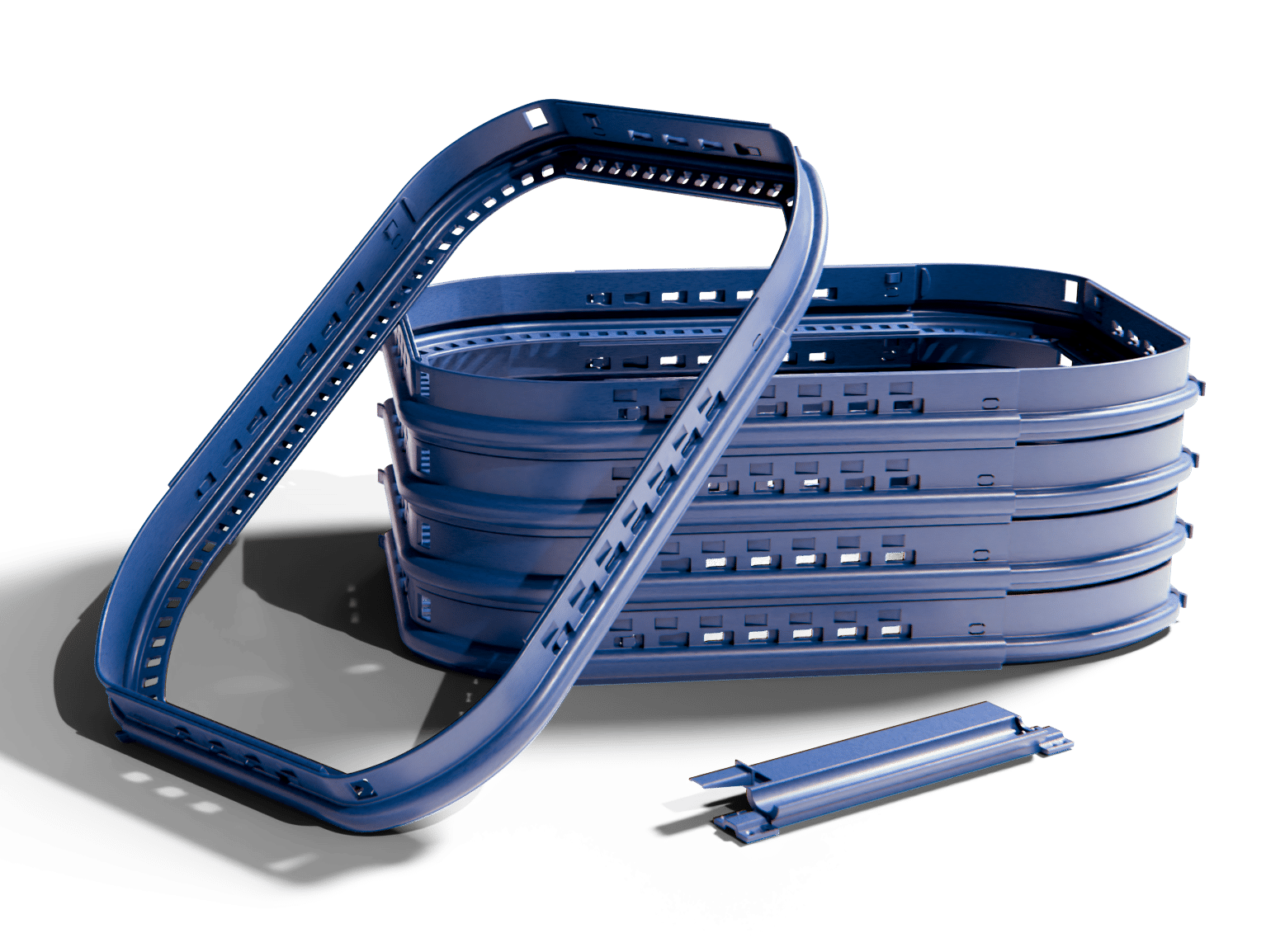 It is made of marine grade polycarbonate, as this thermoplastic has high impact strength and it is corrosion and UV resistant, both important for the harsh environment of the ocean. This would be used with an injection moulding manufacturing process which has a high upfront tooling cost but is necessary for the high production volumes envisaged as part of the scaling up of restoration activities around the world. Features such as the wedged shaped locks and locking tabs have been designed without overhangs to ensure manufacturability with this process. Additional features like the attachment holes on the inner edge would be laser cut as these would not be possible in the injection moulding stage.