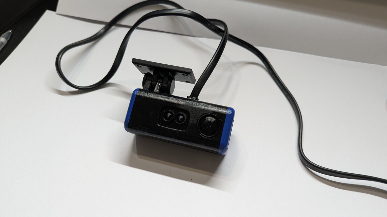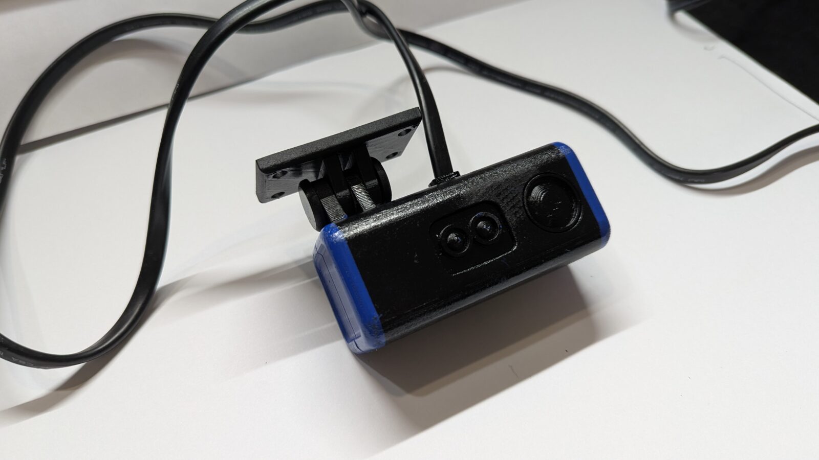 Car mount – The mount for the device is able to be secured to the car either with screws or double-sided adhesive. The mount attaches to the car through a hinge, allowing the device to tilt up and down.