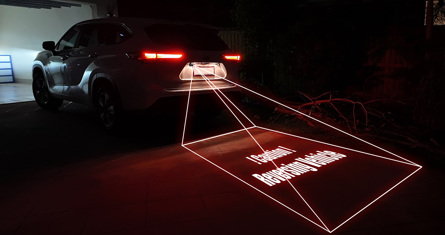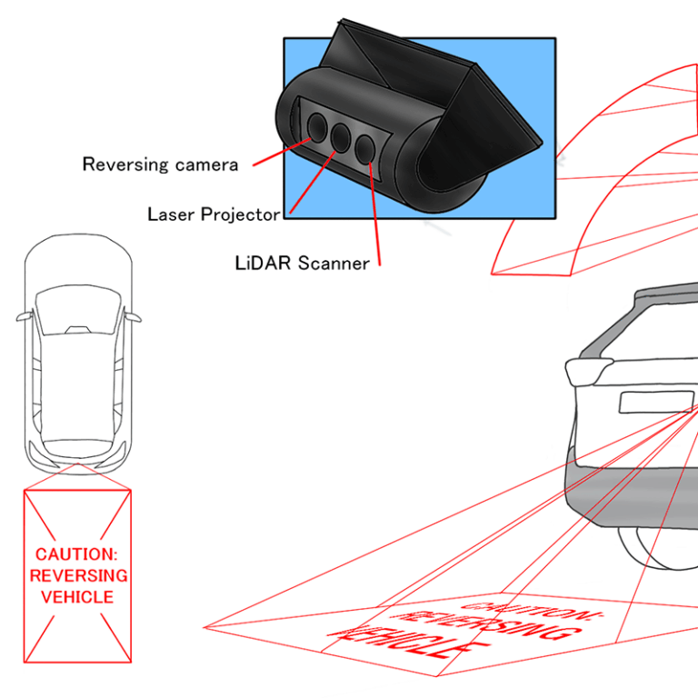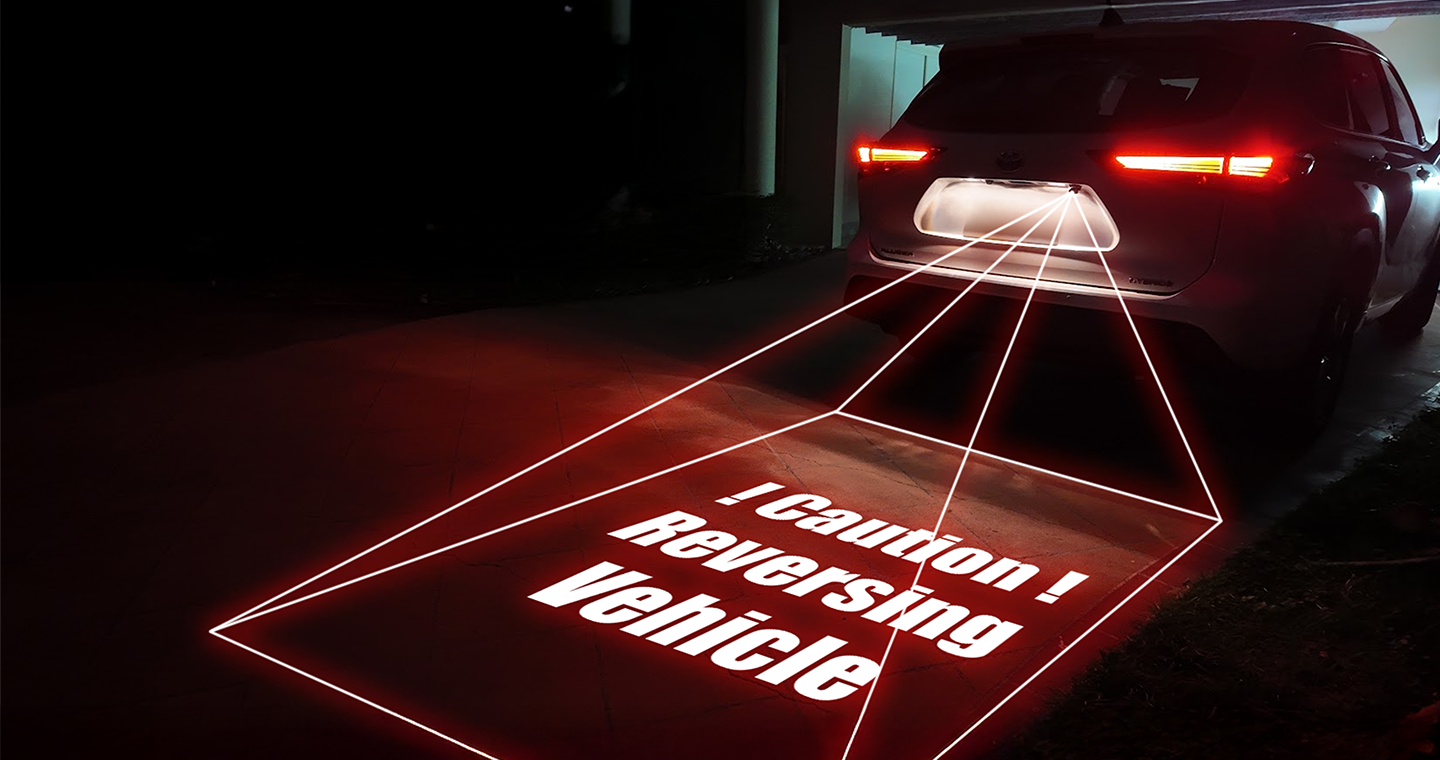 Laser Projector – Projects the path of the reversing vehicle onto the ground for nearby pedestrians to see.