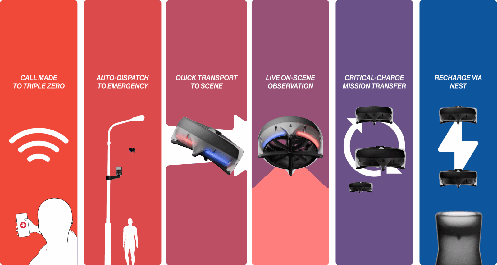 HALO is an autonomous drone system deployed the moment a Triple Zero call is made, delivering real-time visual clarity to enable faster, informed response. Designed to scale with urban growth, HALO brings Vision, Clarity and Control to emergency communication.