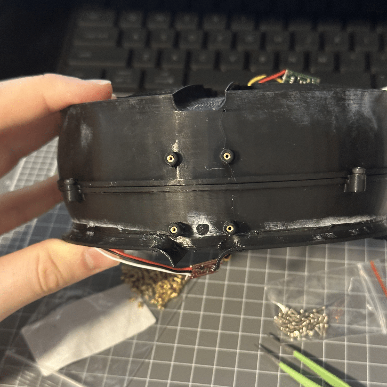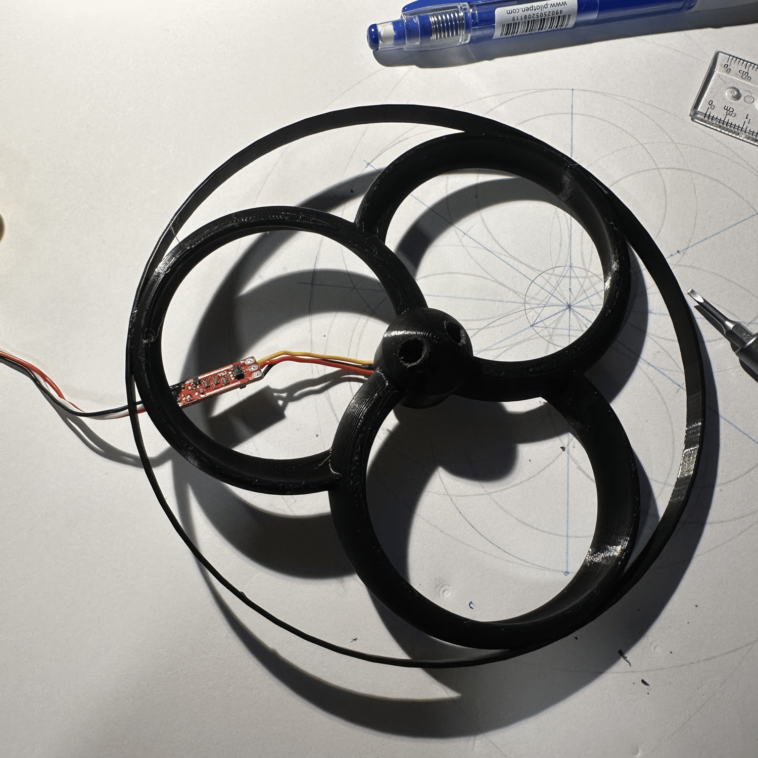 HALO has been intentionally designed with scalable manufacturing in mind. Starting with a low-volume production via mass customisable SLS 3D printed components, early units would incorporate a Carbon Fibre reinforced Nylon material for its main body components, allowing lightweight strength, rapid iteration and easy repairs. Translucent components are printed via a frosted polycarbonate, allowing diffused lighting throughout the part. Off-the-shelf electrical components, such as flight controllers, speed controllers, motors, batteries and other electronics are used for reliability and quick replacement. As the product becomes more standardised within the EMS system, these same, or developed geometries can easily be transitioned to traditional injection-moulded, fibre reinforced polymers to reduce unit cost, and increase manufacturing capacity.