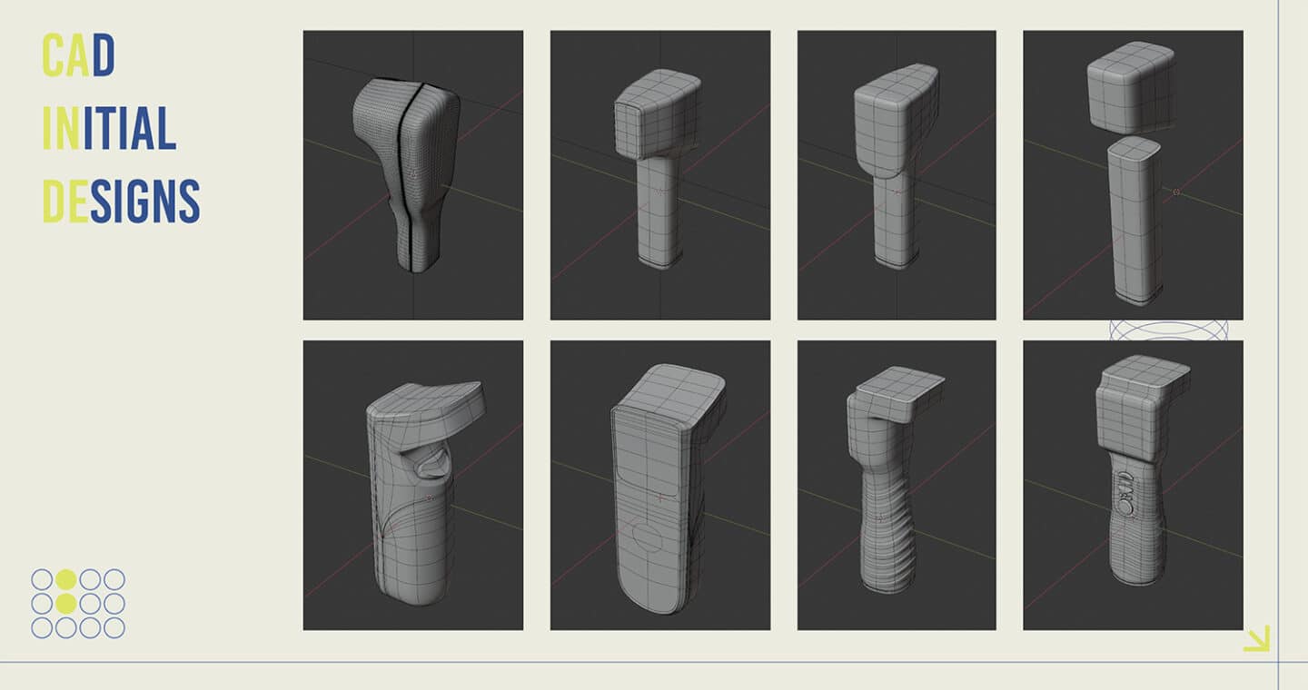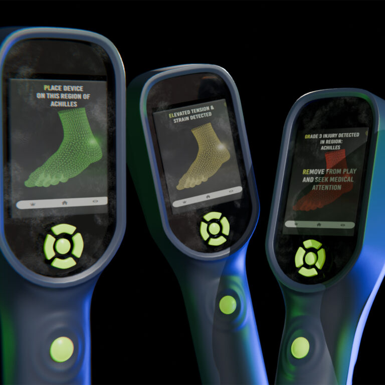 Early ideation explored a range of directions, from wearable sleeves and smart insoles to portable ultrasound probes. Following evaluation and feedback, the ultrasound device with built -in display concept was selected for further development, as it best aligned with the research insights. Compact, rugged, and self-contained, the pod integrates a built-in display and dual-user functionality, meeting the combined needs for portability, usability, and professional credibility across both sporting and clinical environments.