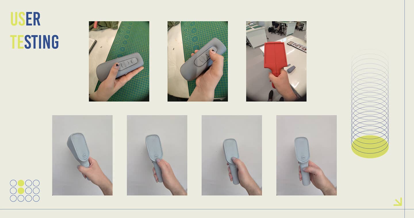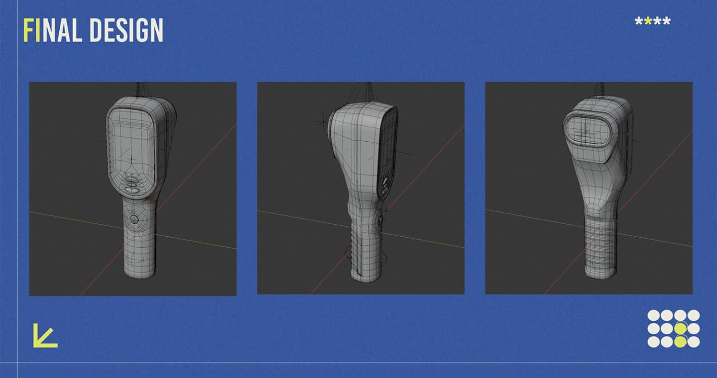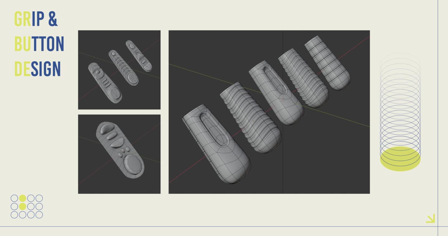 The CAD and product development phase focused on achieving a compact, ergonomic form that balanced internal architecture with user comfort and durability. Blender was used to rapidly iterate multiple design directions, exploring variations in form, geometry, and grip ergonomics before refining the final model. Prototyping progressed through foam and clay models to evaluate tactile feel and proportion, followed by high-fidelity 3D prints for assessing hand fit, button placement, and overall usability. Feedback from peers, coaches and physiotherapists validated the form and control layout, ensuring intuitive operation in demanding, fast-paced sporting environments.