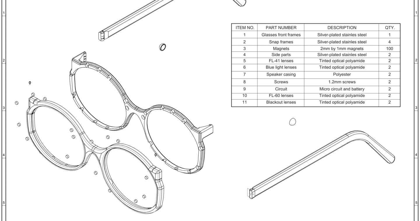 The frame itself is laser-cut from satin-finished stainless steel, stylish and not clinical. One hundred recessed magnets create seamless alignment between the lenses, side shells, and speaker modules, so users can adapt the product to any context instantly. Every edge is smooth and matte-coated to reduce glare and tactile irritation.