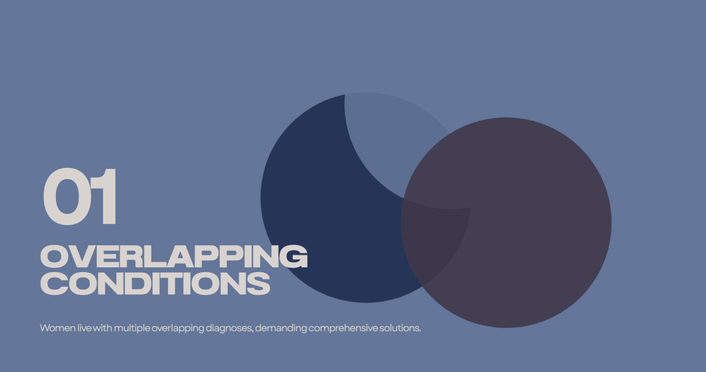 Women’s health conditions are some of the most common, yet still some of the most under-researched in the world. Conditions like endometriosis, PMDD and chronic fatigue, don’t just coexist, they collide. Most women live with multimorbidity, where physical and mental conditions amplify each other. What this creates isn’t just pain, it’s anticipatory anxiety. The fear of not knowing when unpredictable symptoms will suddenly appear. The fear of not knowing when anxiety or pain will hit, in any environment.
