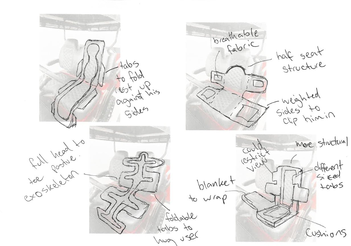 Taking the key aspects of my research observations I began a long processes of iterations and ideation sketches.