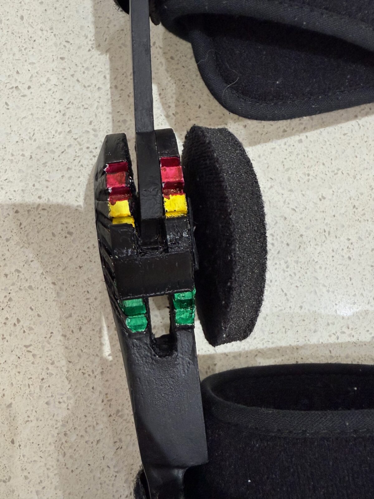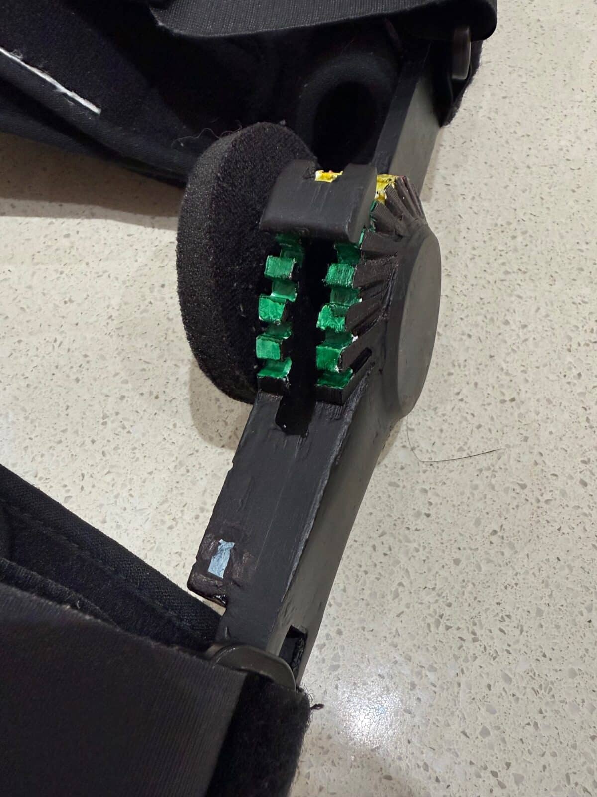 Making it so that it can be comfortable for anyone. The slider system uses pressure tabs to hold the adjustable slider in place, making it easy to change and hold it securely.