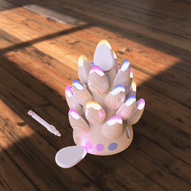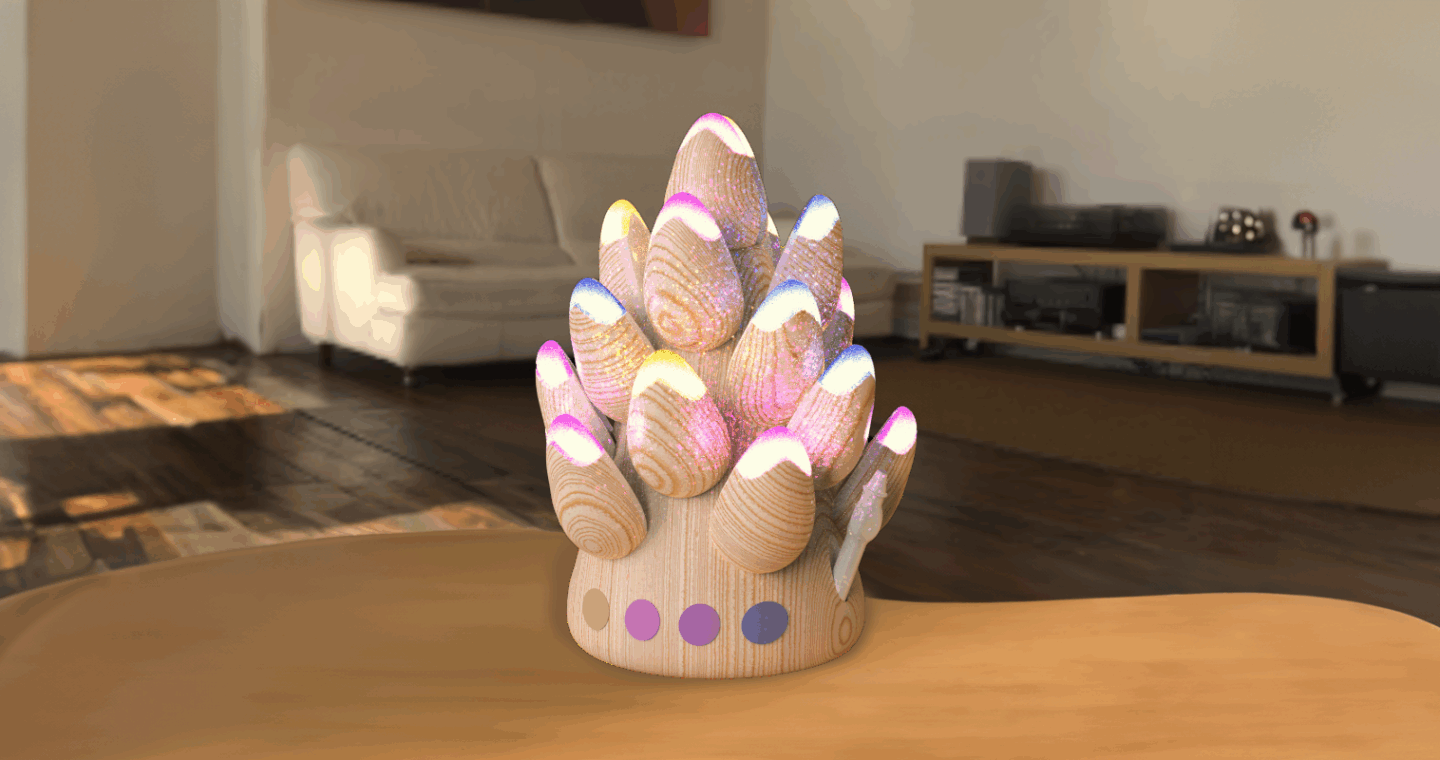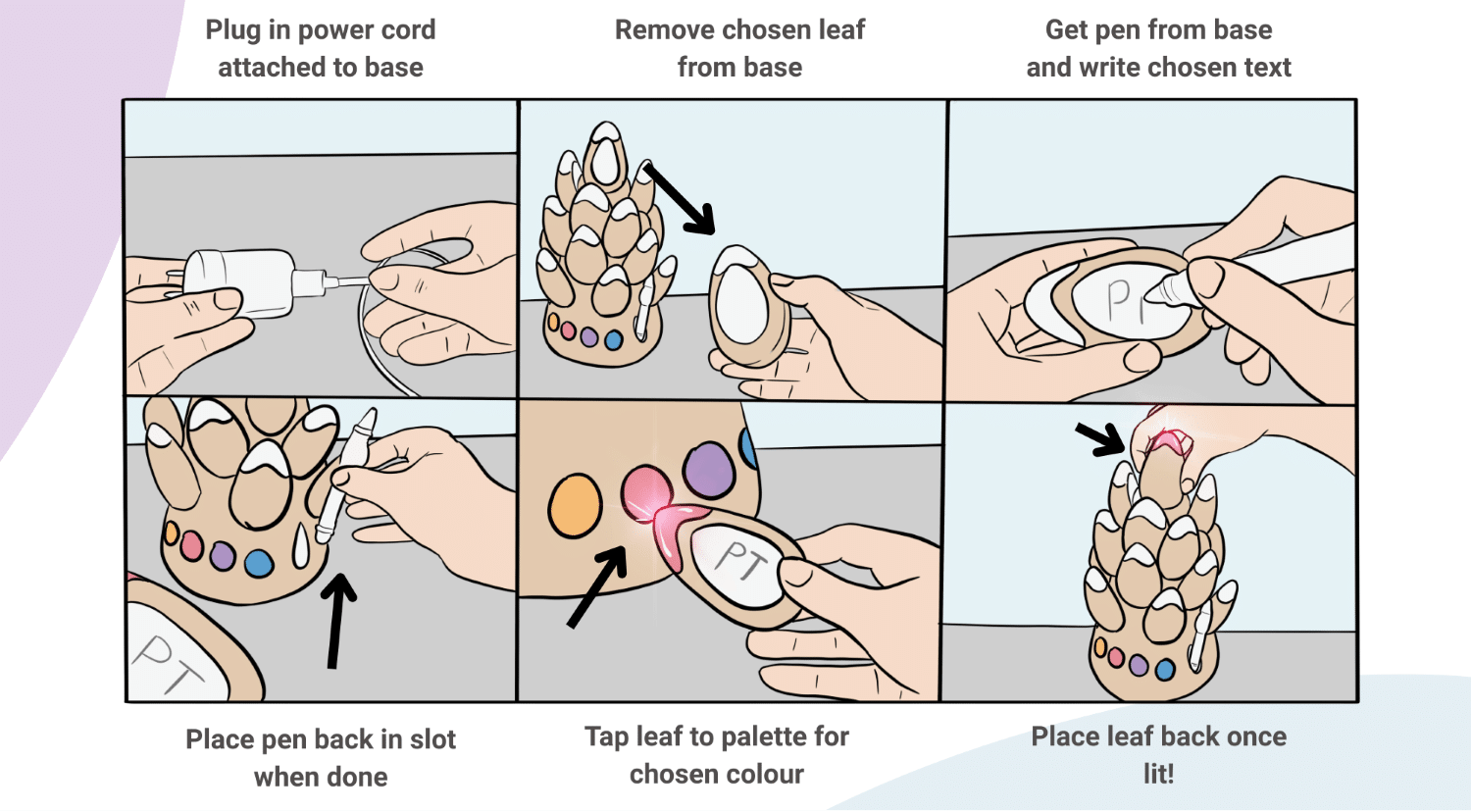 The ‘colour palette’ presented at the front of the base is for the leaves to be tapped too, allowing the colour change when signaled.