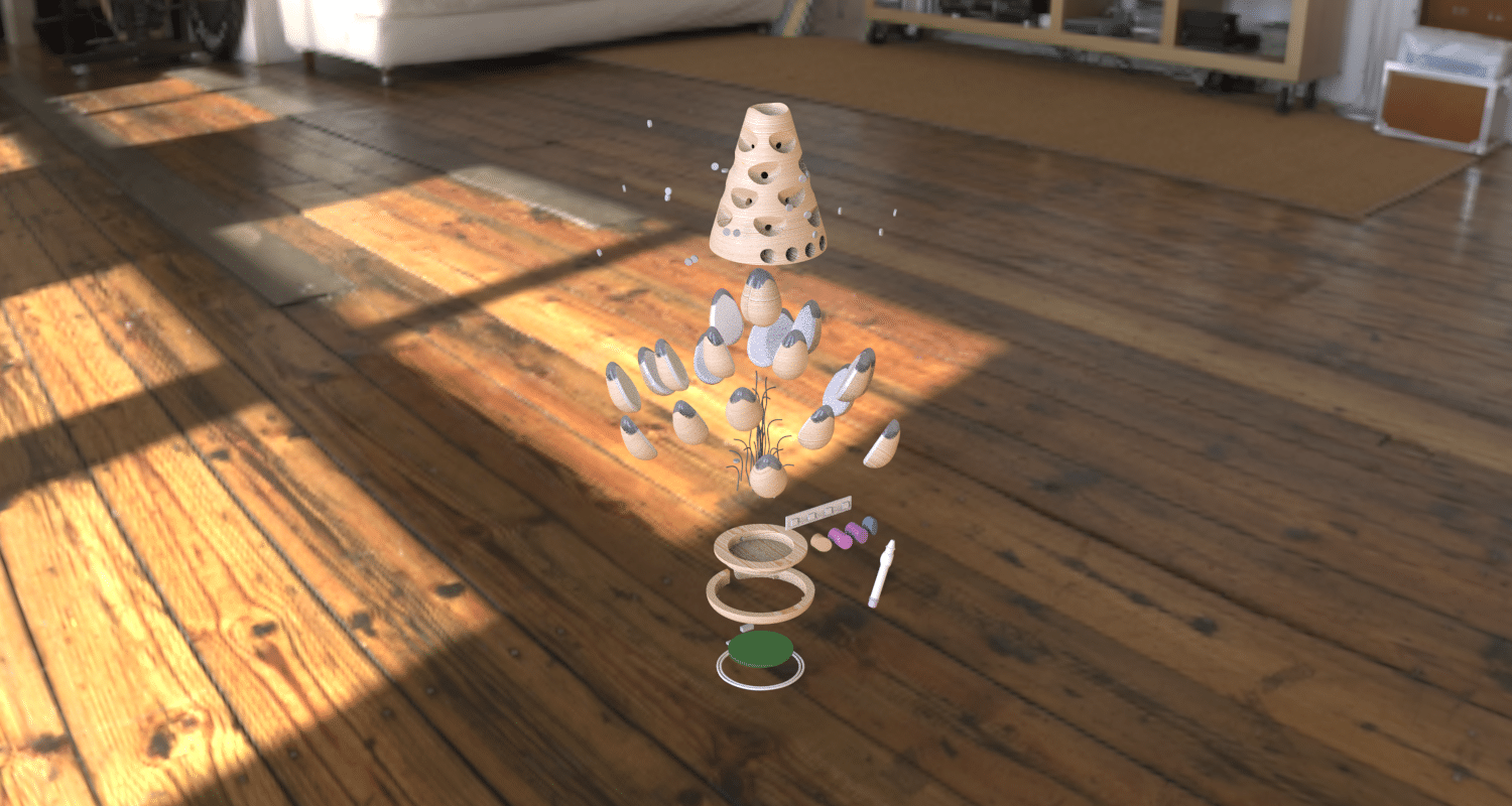 Each leaf has a small circuit board, battery, and LED allowing the leaves to light up individually as well as when connected and charged at the base.
