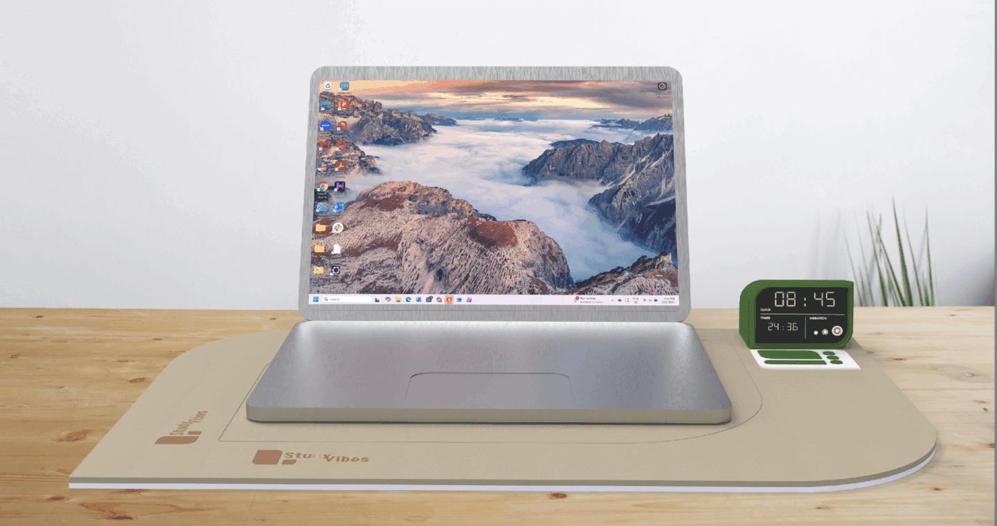 The StudyVibes vibrating desk mat has been designed for people with ADHD completing tertiary education qualifications. It features a sensory-friendly inbuilt timer and clock system which uses physical vibrations to alert users to time passed rather than audio cues. It is hoped that StudyVibes will make tertiary education more accessible by promoting time management, focus, and executive function.