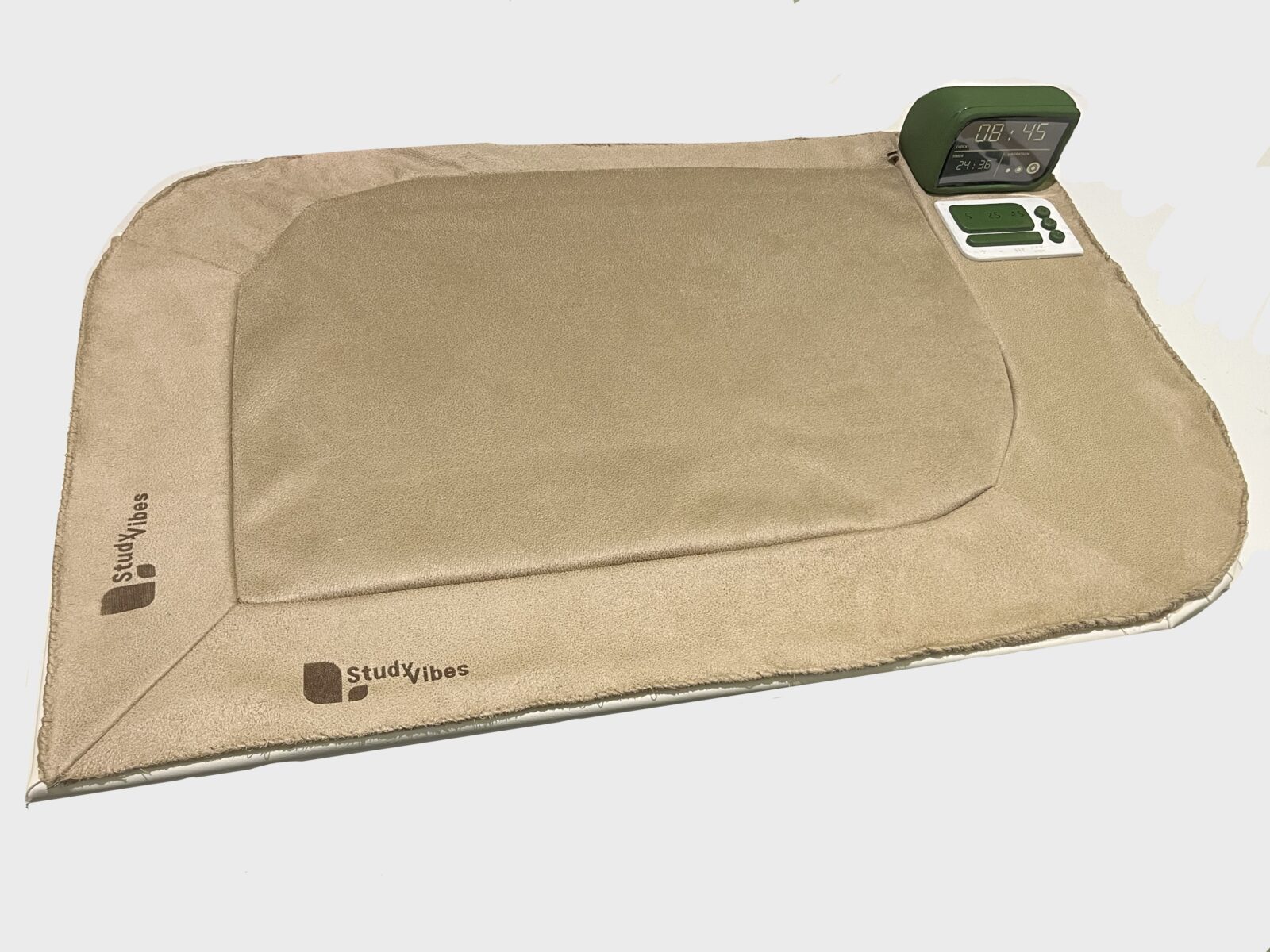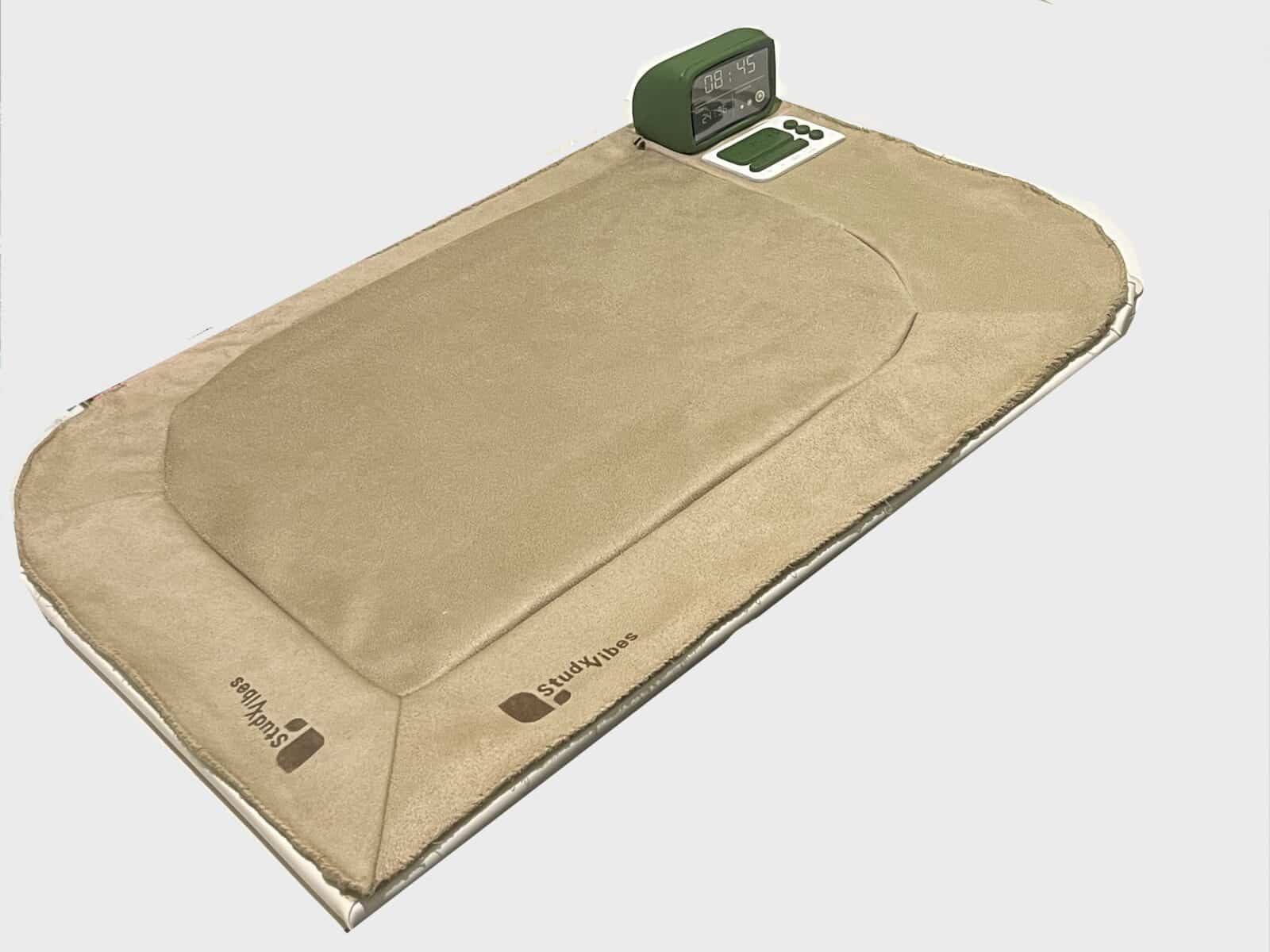 The solution is StudyVibes, a vibrating desk mat with an inbuilt physical timer. By implementing a physical timer which alerts users to time passed through physical vibrations through the piezoelectric biomorph actuator technology, the StudyVibes offers a sensory-friendly alternative to the alarm clock. This allows the user to freely set the timer whilst they are studying, and eliminates the need for distracting audio alarm clocks and smartphone time management systems. Therefore, the StudyVibes allows users to create an environment conducive to study, whilst improving focus and time management.