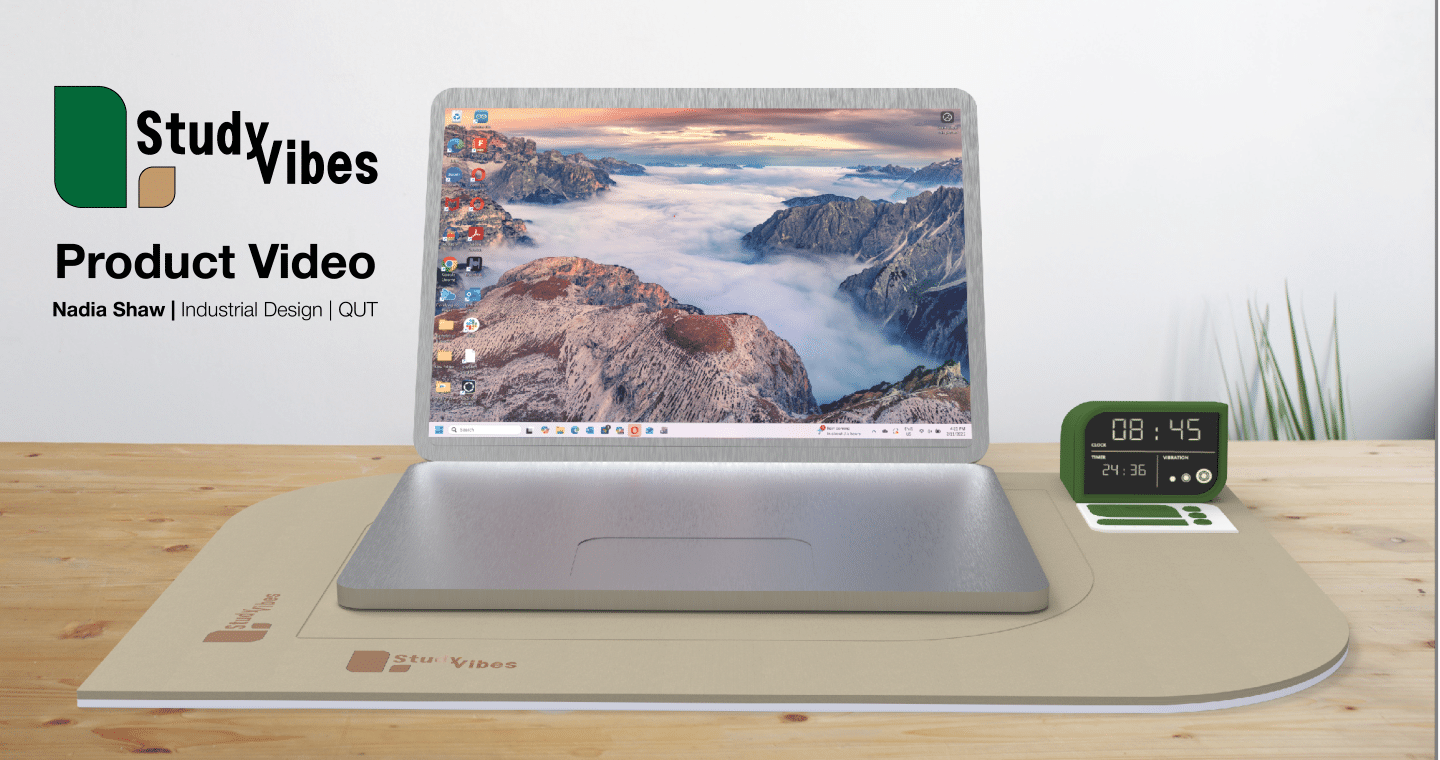 The StudyVibes vibrating desk mat has been designed for people with ADHD completing tertiary education qualifications. It features a sensory-friendly inbuilt timer and clock system which uses physical vibrations to alert users to time passed rather than audio cues. It is hoped that StudyVibes will make tertiary education more accessible by promoting time management, focus, and executive function.