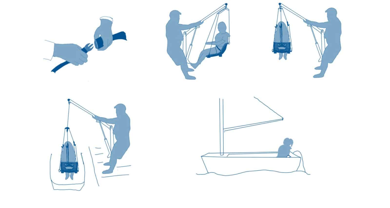 While weighted centreboards may reduce the likelihood of standard dinghies capsizing, it is still possible. The rail system is open-ended to allow the chair and travellers to slide over the side, allowing them into the water vertically so their life jacket can be effective and they can be easily craned out of the water.