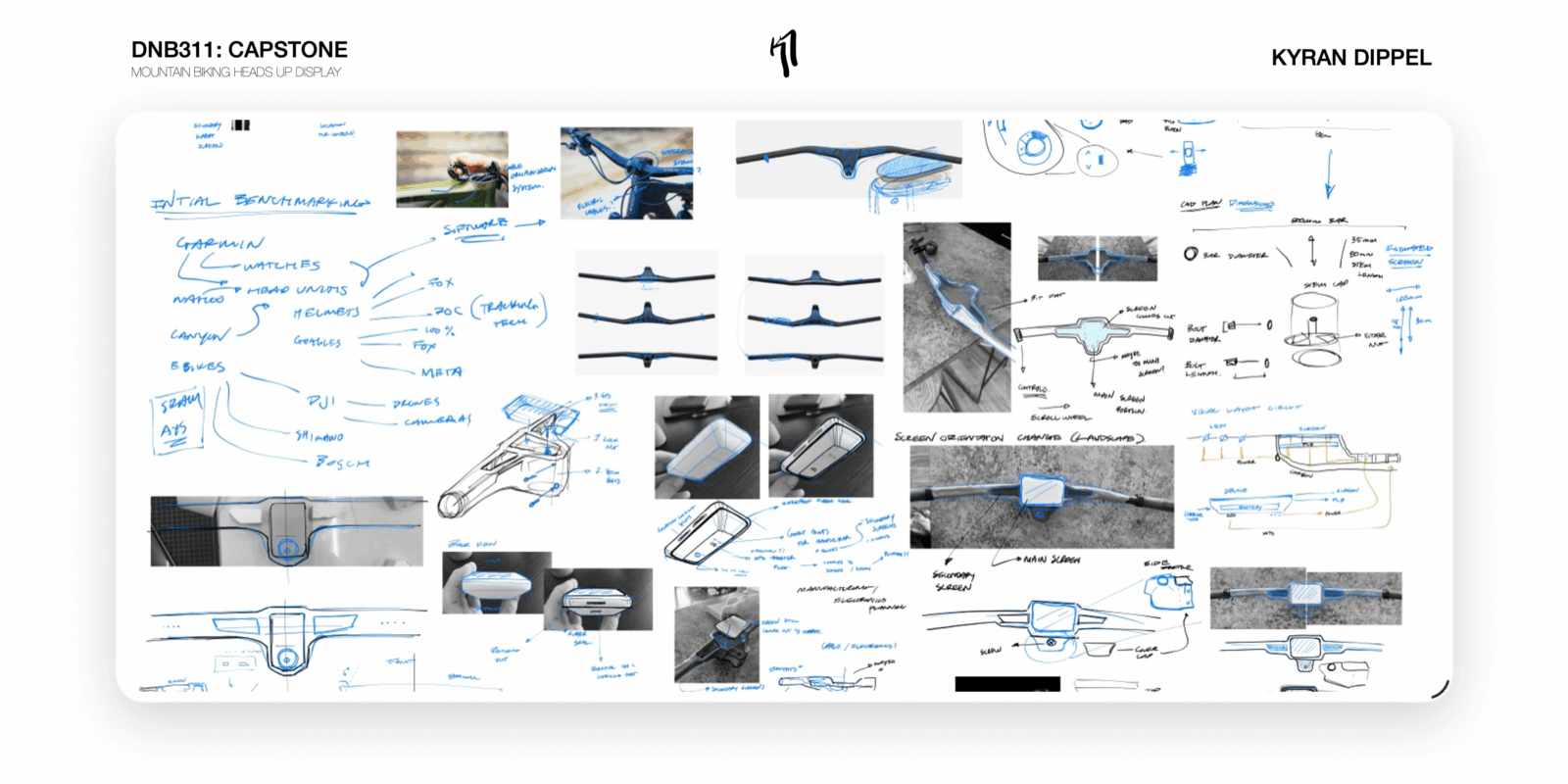 The design process began by exploring the duality of mountain biking. The pursuit of challenge and the desire for control. Through moodboarding, sketching, and prototyping, these insights evolved into a visual and functional language that shaped the design process of this project.